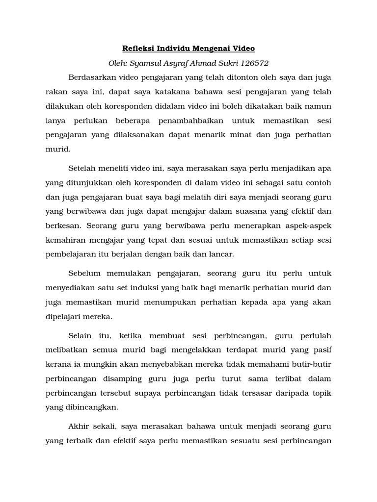 Refleksi Individu Mengenai Video Pdf